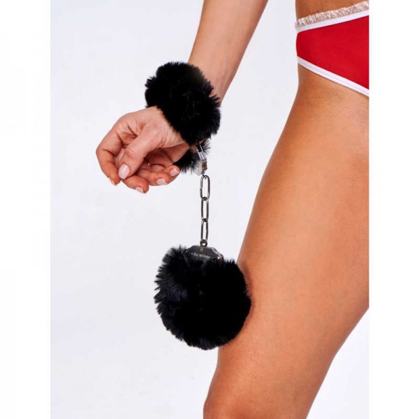 Металлические наручники обшиты супер объемным экомехом черного цвета! Мех съемный, что позволяет экспериментировать с ощущениями!
